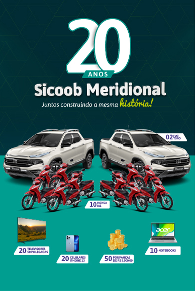 A cada investimento efetuado, em POUPANÇA, COTA CAPITAL ou RDC, o cooperado do Sicoob Meridional ganha números da sorte para concorrer aos prêmios.