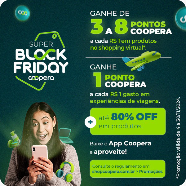 Na campanha da Super Black Friday Coopera o usuário tem uma ótima oportunidade de acumular pontos para trocar por produtos e serviços
