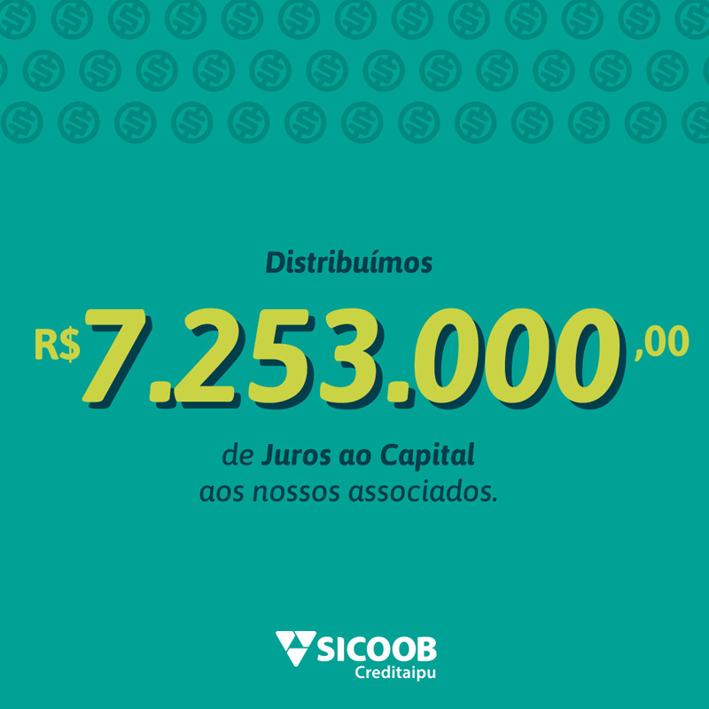 Em 2022 o Conselho de Administração do Sicoob Creditaipu decidiu que o valor distribuído sobre os juros ao capital, correspondesse a 100% da taxa média de remuneração do índice da poupança. Foram R$ 7,2 milhões destinados aos associados com capital social integralizado.