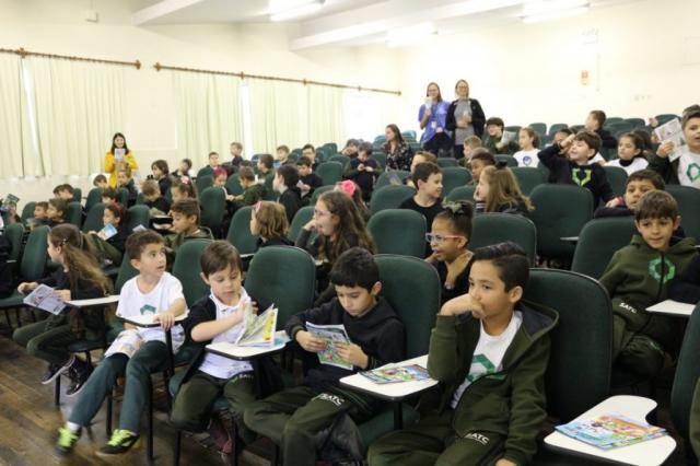 A visita aconteceu no colégio Satc de Criciúma, contemplando os alunos do 1º ano da instituição