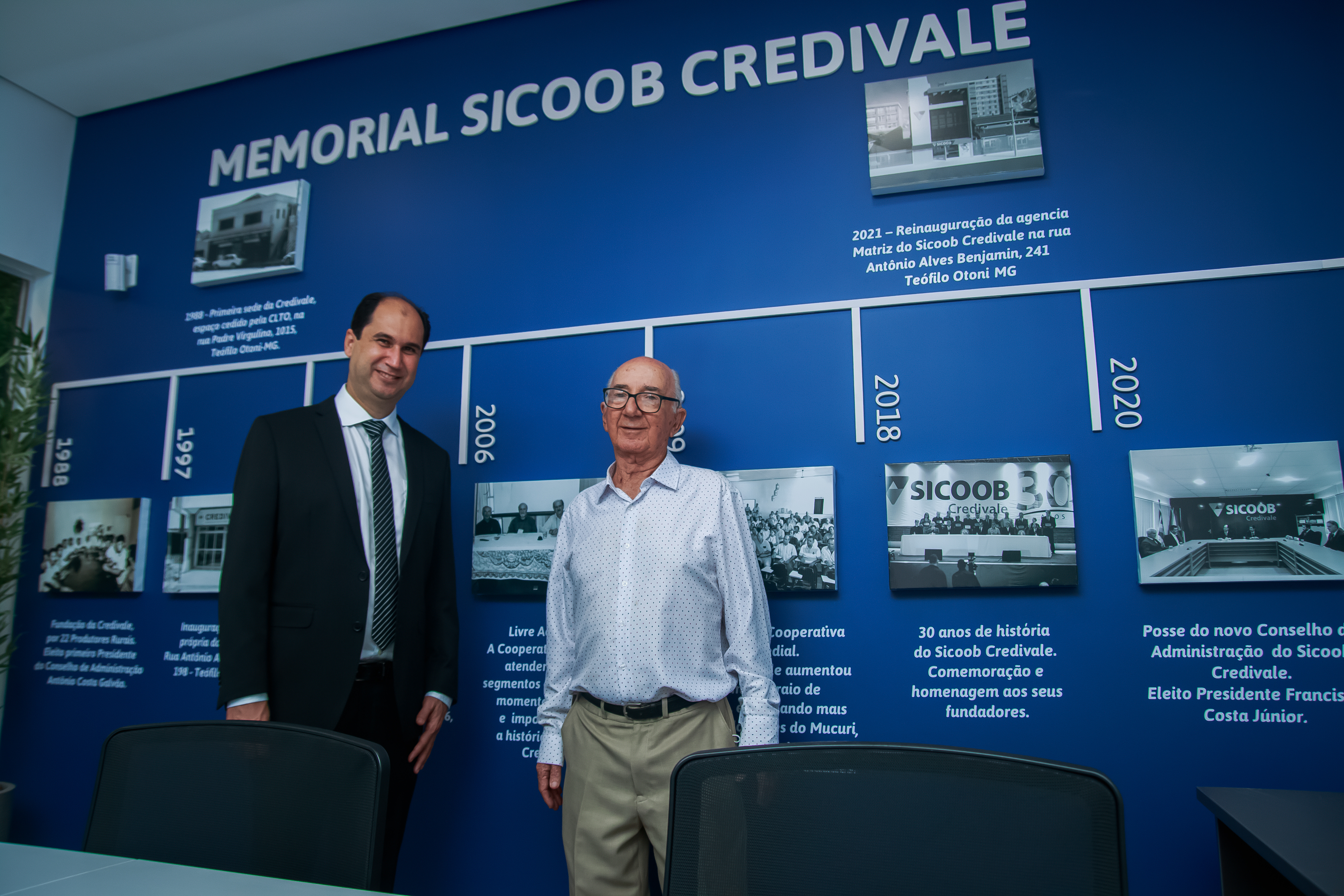 Memorial Sicoob Credivale (esq) Atual Presidente do Sicoob Credivale Francisco Costa Júnior (dir) Antônio Costa Galvão Presidente de Honra e um dos fundadores do Sicoob Credivale.