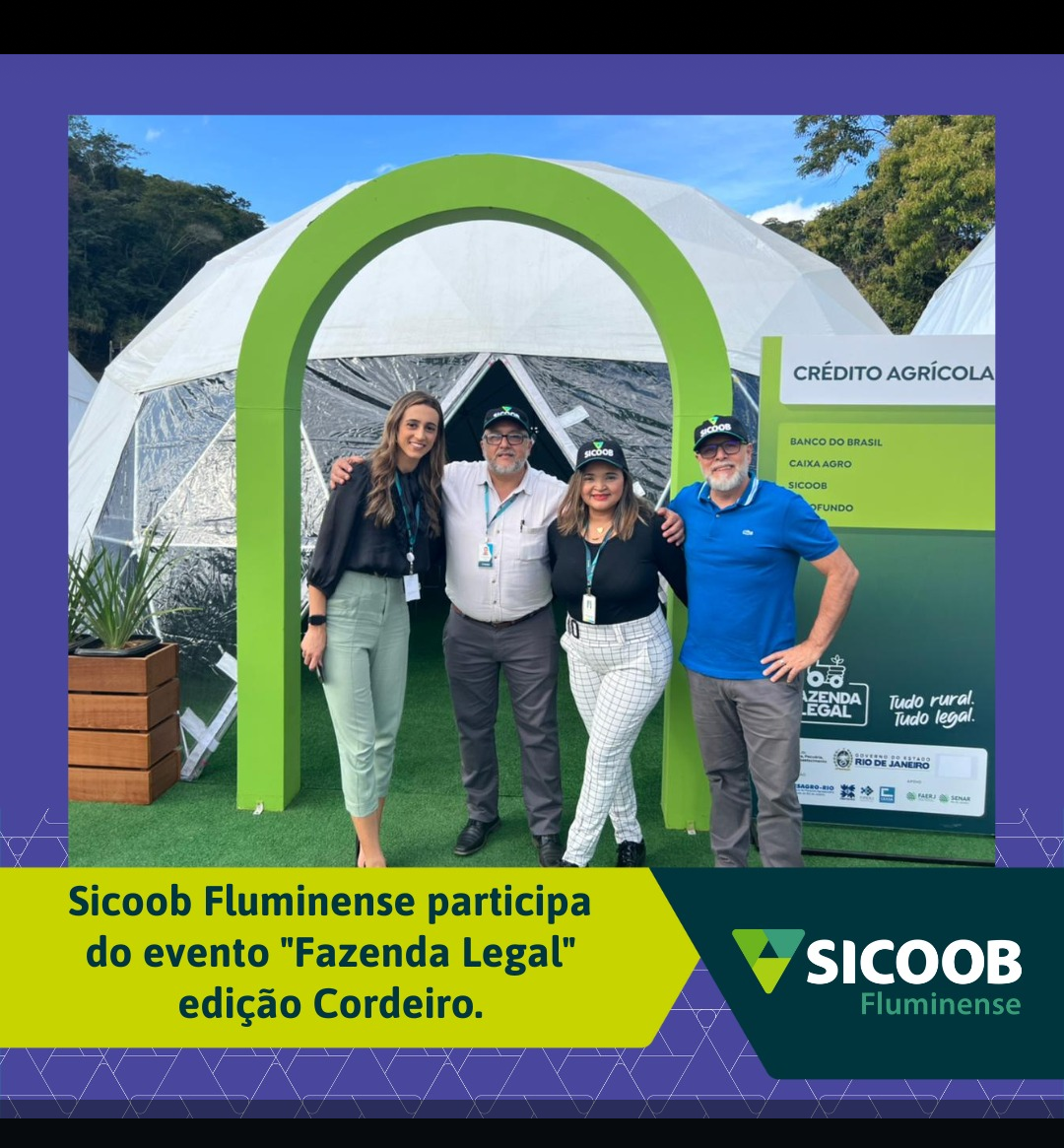 O Sicoob Fluminense participou nos dias 15 e 16 de julho, na cidade de Cordeiro, da quinta etapa do programa “Fazenda Legal”, iniciativa da Pesagro-RJ em parceria com a Faerj e apoio do Consórcio Público Intermunicipal de Desenvolvimento do Norte e Noroeste Fluminense.