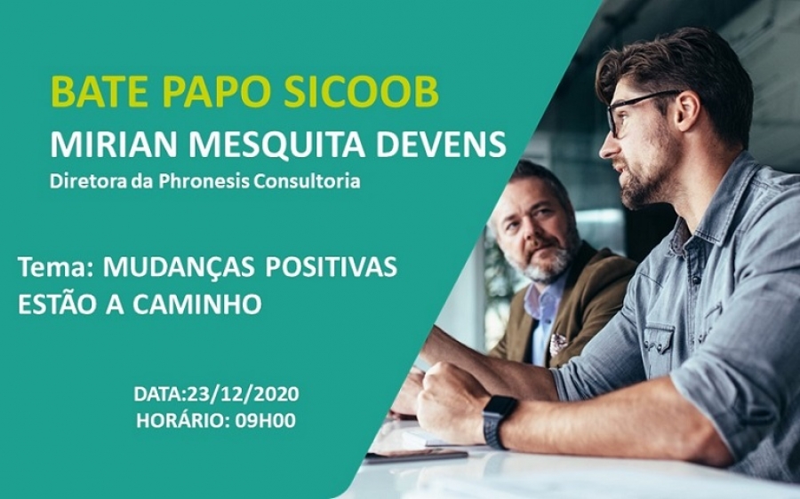 O evento foi feito dentro do “Bate Papo Sicoob”, que ocorre semanalmente, e foi aberto pela Presidente do Conselho de Administração, Vera Almeida. Depois de enfatizar que “devemos acreditar que teremos um mundo melhor, mais afetivo, mais companheiro, mais tolerante, sem preconceitos, sem excesso de ego e sem egoísmo”, Vera apresentou a palestrante Mirian Mesquita Devens, que falou sobre “Mudanças Positivas Estão a Caminho” – A vida está sempre seguindo em frente. Enfrente seus desafios para que eles não incomodem mais você.