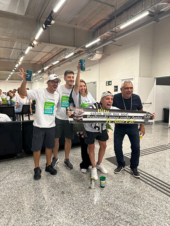 Um dos sortudos, o Vinícius Xavier, colaborador do PA de Serrania, além de garantir seu lugar no primeiro jogo da grande final, ainda vivenciou uma experiência emocionante. “Meu pai faleceu recentemente e um dos nossos sonhos era assistir ao jogo do Galo juntos na Arena MRV. Por isso, quando recebi a notícia que fui escolhido para assistir ao jogo, fazia 40 dias do falecimento do meu pai e na hora só consegui pensar nele e no nosso sonho. Infelizmente não conseguimos realizar juntos fisicamente, mas imaginei a gente lá torcendo em todos os momentos. Foi uma das melhores sensações da minha vida. Agradeço imensamente ao Sicoob Agrocredi pela oportunidade e todos os momentos proporcionados”, comentou Vinícius.