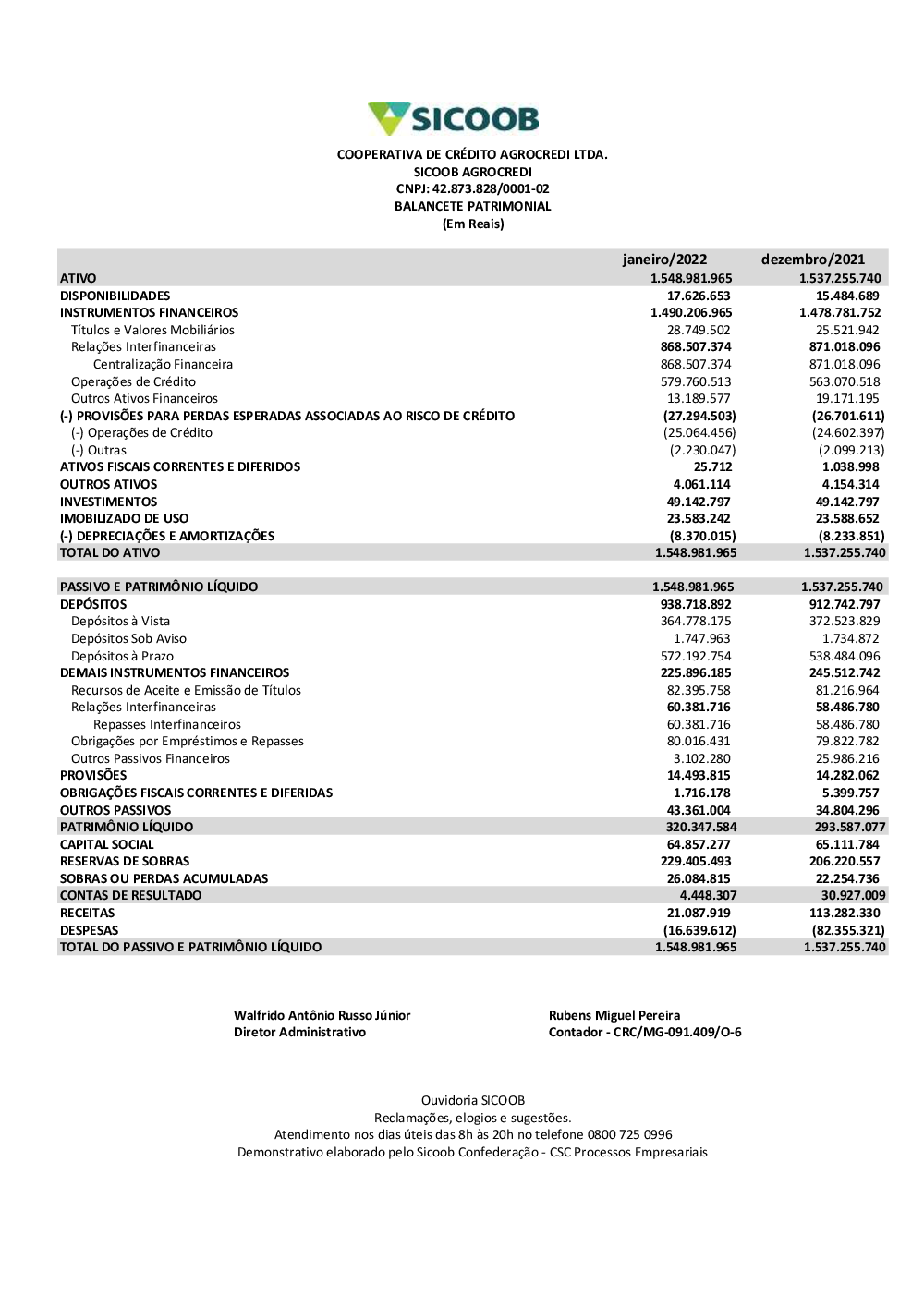 01 - Janeiro/2022 - Balancete de Verificação Mensal