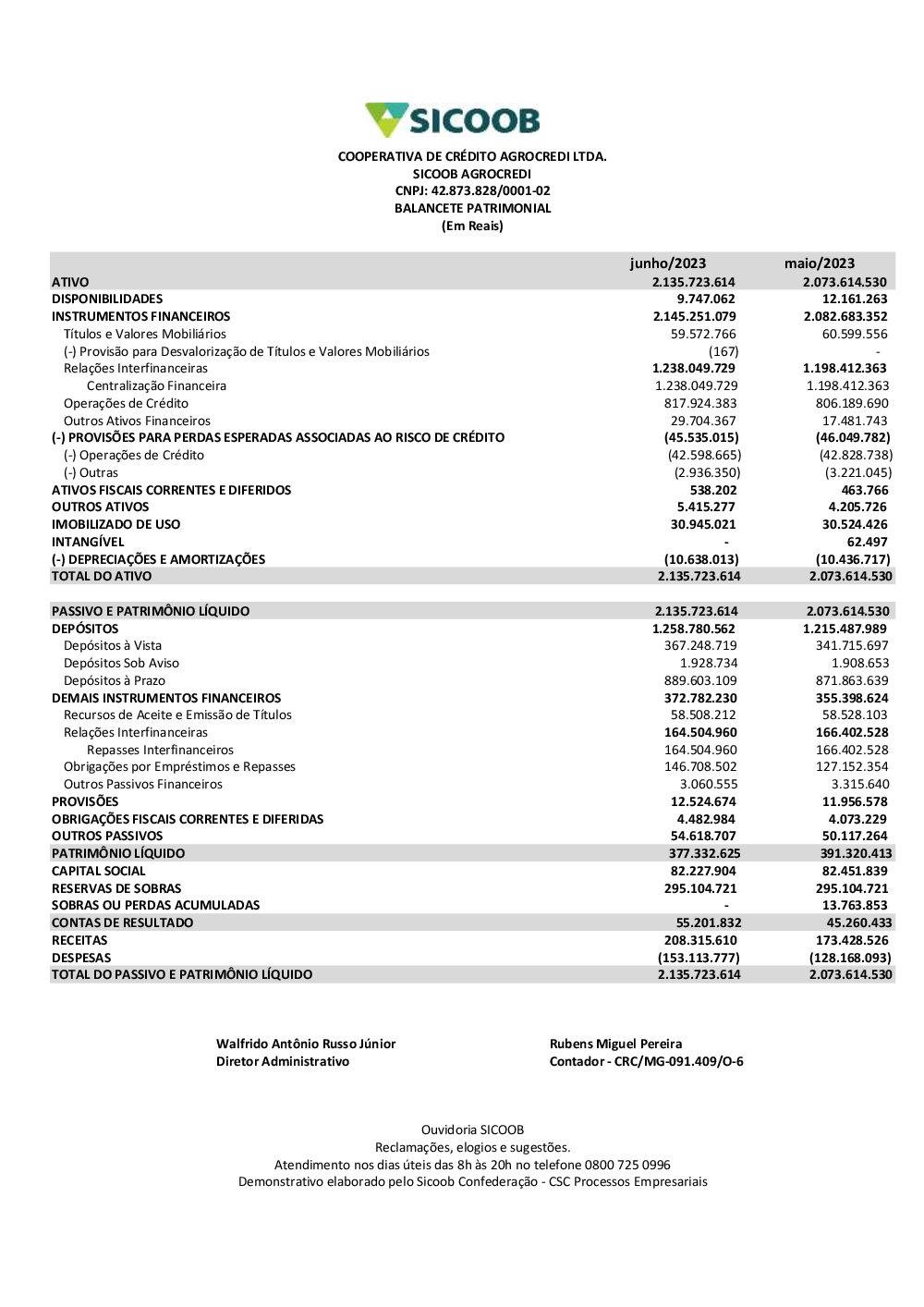 06 - Junho/2023 - Balancete de Verificação Mensal