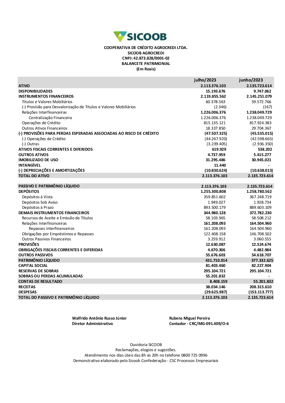 07 - Julho/2023 - Balancete de Verificação Mensal
