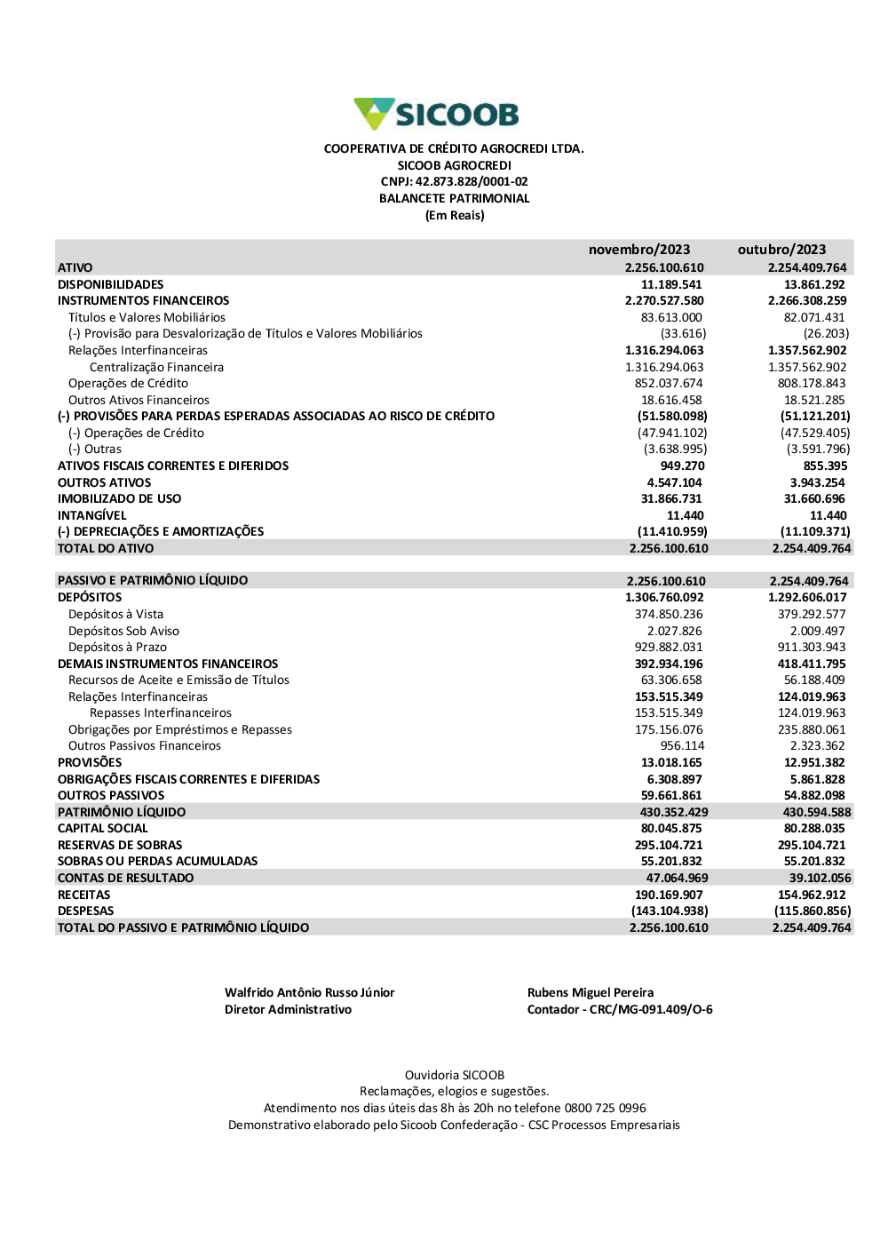11 - Novembro/2023 - Balancete de Verificação Mensal