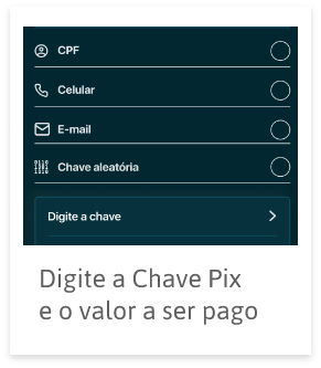 de quem irá pagar com o Pix.Os pagadores poderão realizar um Pix de duas formas diferentes: Chave Pix ou QR Code.