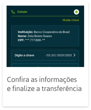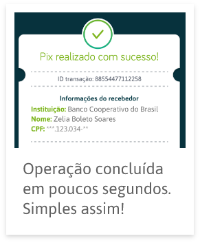 (gerada pelo aplicativo com números, letras e símbolos. É possível cadastrar uma única chave ou gerar uma a cada vez que for compartilhá-la com alguém, apagando a anterior)Aqui no Sicoob, o cadastro é rápido e fácil.