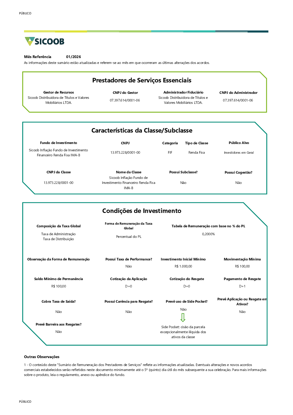 Sicoob Inflação Fundo de Investimento Financeiro Renda Fixa Ima-B