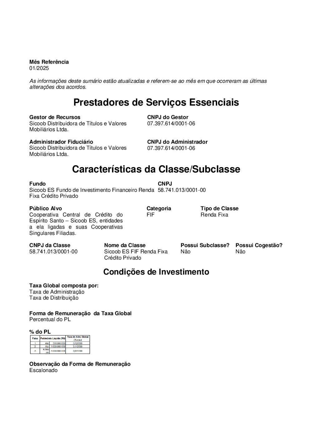 É um fundo destinado a receber aplicações, no segmento de renda fixa, de clientes pessoas físicas e/ou jurídicas do Banco Sicoob e das cooperativas do Sicoob, incluindo regimes próprios de Previdência Social, nos termos da Lei nº 9.717, assim como de quaisquer outros investidores, inclusive Companhias Seguradoras, Sociedades de Capitalização e Entidades Abertas e Fechadas de Previdência Complementar.
