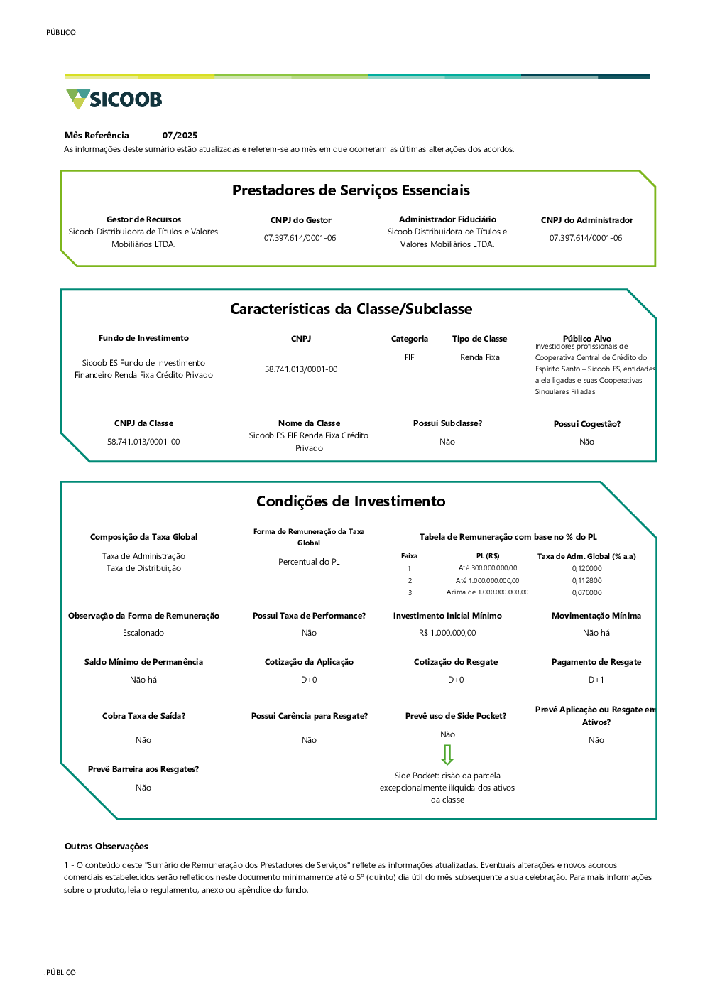 É um fundo destinado a receber aplicações, no segmento de renda fixa, de clientes pessoas físicas e/ou jurídicas do Banco Sicoob e das cooperativas do Sicoob, incluindo regimes próprios de Previdência Social, nos termos da Lei nº 9.717, assim como de quaisquer outros investidores, inclusive Companhias Seguradoras, Sociedades de Capitalização e Entidades Abertas e Fechadas de Previdência Complementar.