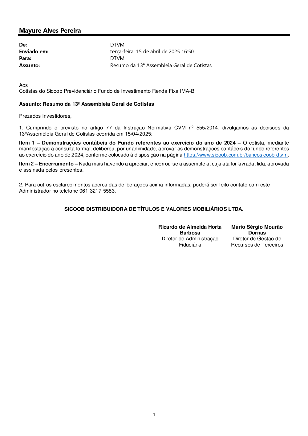 Sicoob Inflação Fundo de Investimento Financeiro Renda Fixa Ima-B