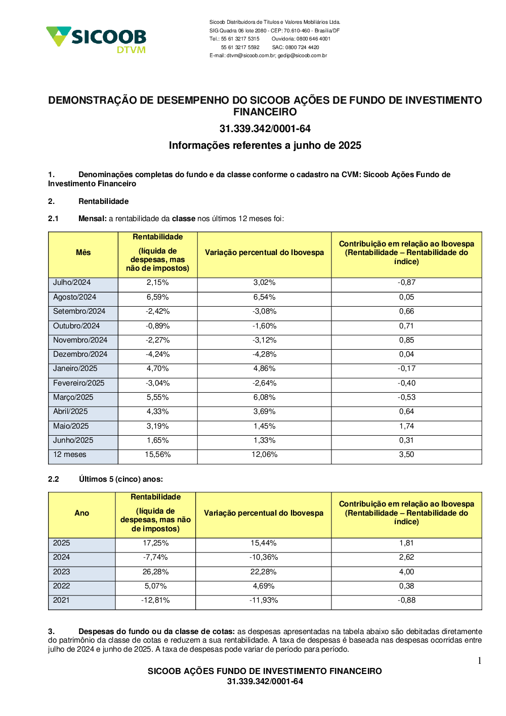 É um fundo destinado a receber aplicações, no segmento de renda variável, de clientes pessoas físicas e/ou jurídicas do Banco Sicoob e das cooperativas do Sicoob, incluindo às Entidades Fechadas de Previdência Complementar. É indicado para investidores que possuem, como objetivo, o investimento em empresas sustentáveis. A metodologia de investimento adotada para seleção e ponderação de ativos considera a avaliação das práticas de gestão de aspectos sociais, ambientais e/ou de governança corporativa.