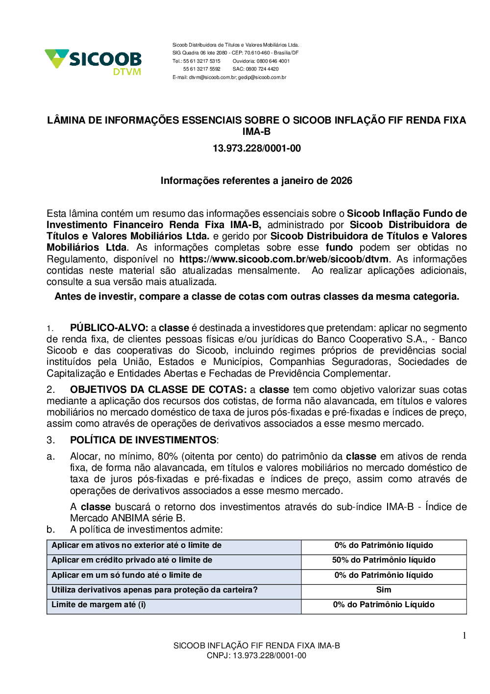 Sicoob Inflação Fundo de Investimento Financeiro Renda Fixa Ima-B