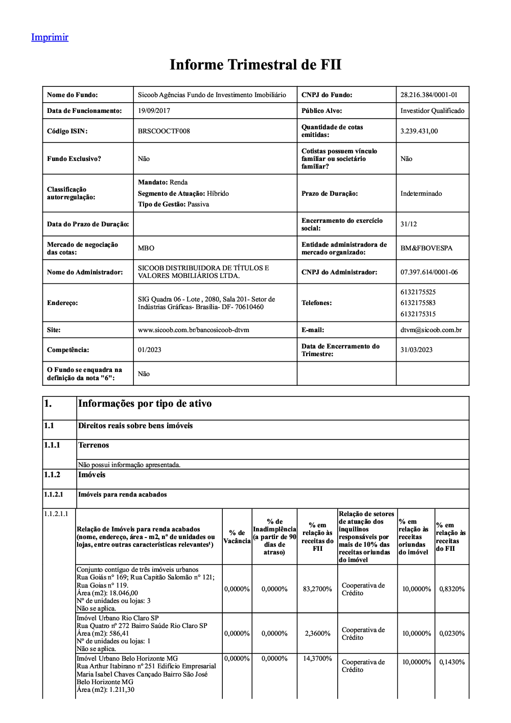 O fundo tem por objeto a realização de investimentos imobiliários, por meio da aquisição de imóveis, com vistas à obtenção de renda por meio da sua locação.