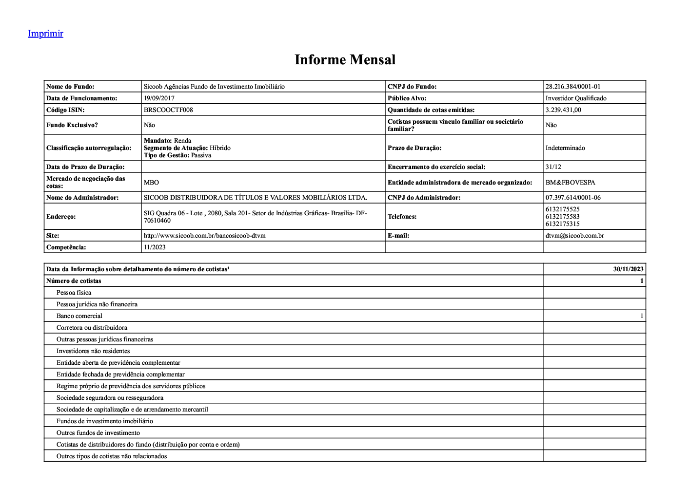 É um fundo destinado a receber aplicações, no segmento de renda fixa, de clientes pessoas físicas e/ou jurídicas do Banco Sicoob e das cooperativas do Sicoob, incluindo regimes próprios de Previdência Social, nos termos da Lei nº 9.717, assim como de quaisquer outros investidores, inclusive Companhias Seguradoras, Sociedades de Capitalização e Entidades Abertas e Fechadas de Previdência Complementar.