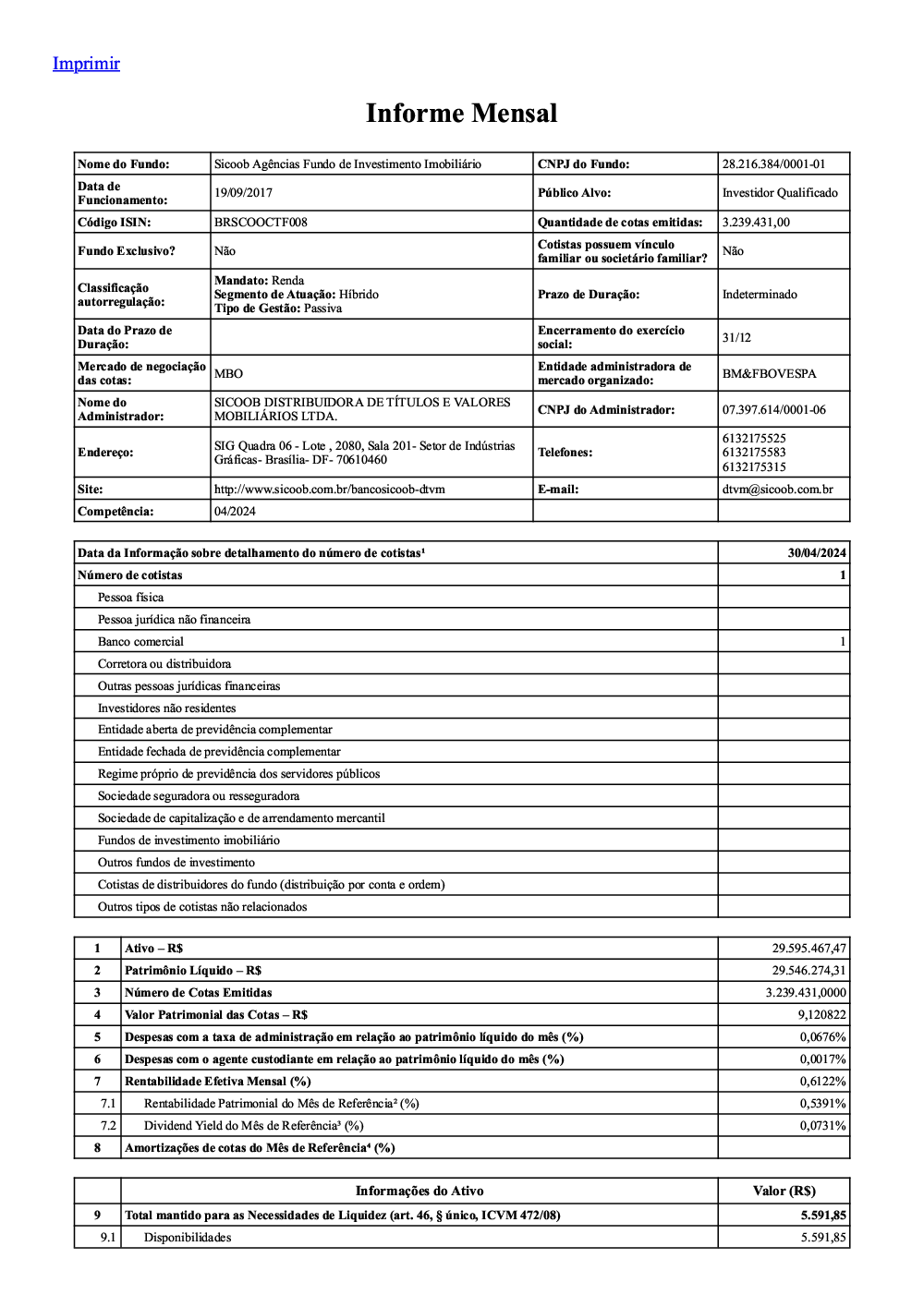Informações aos cotistas