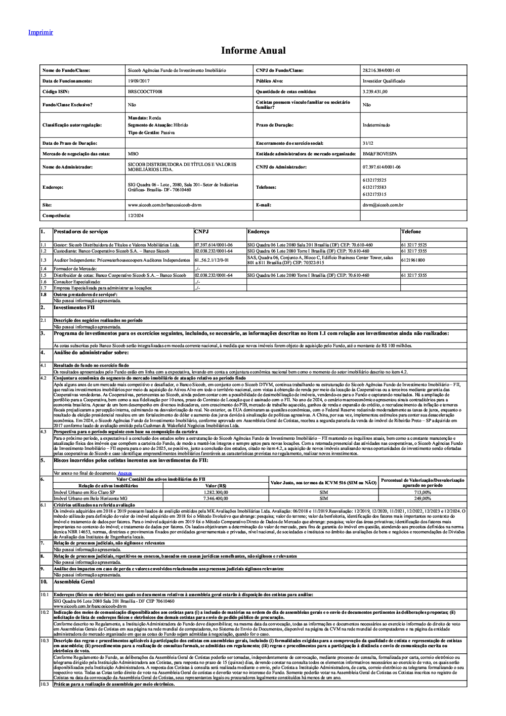 É um fundo destinado a receber aplicações, no segmento de renda fixa, de clientes pessoas físicas e/ou jurídicas do Banco Sicoob e das cooperativas do Sicoob, incluindo regimes próprios de Previdência Social, nos termos da Lei nº 9.717, assim como de quaisquer outros investidores, inclusive Companhias Seguradoras, Sociedades de Capitalização e Entidades Abertas e Fechadas de Previdência Complementar.