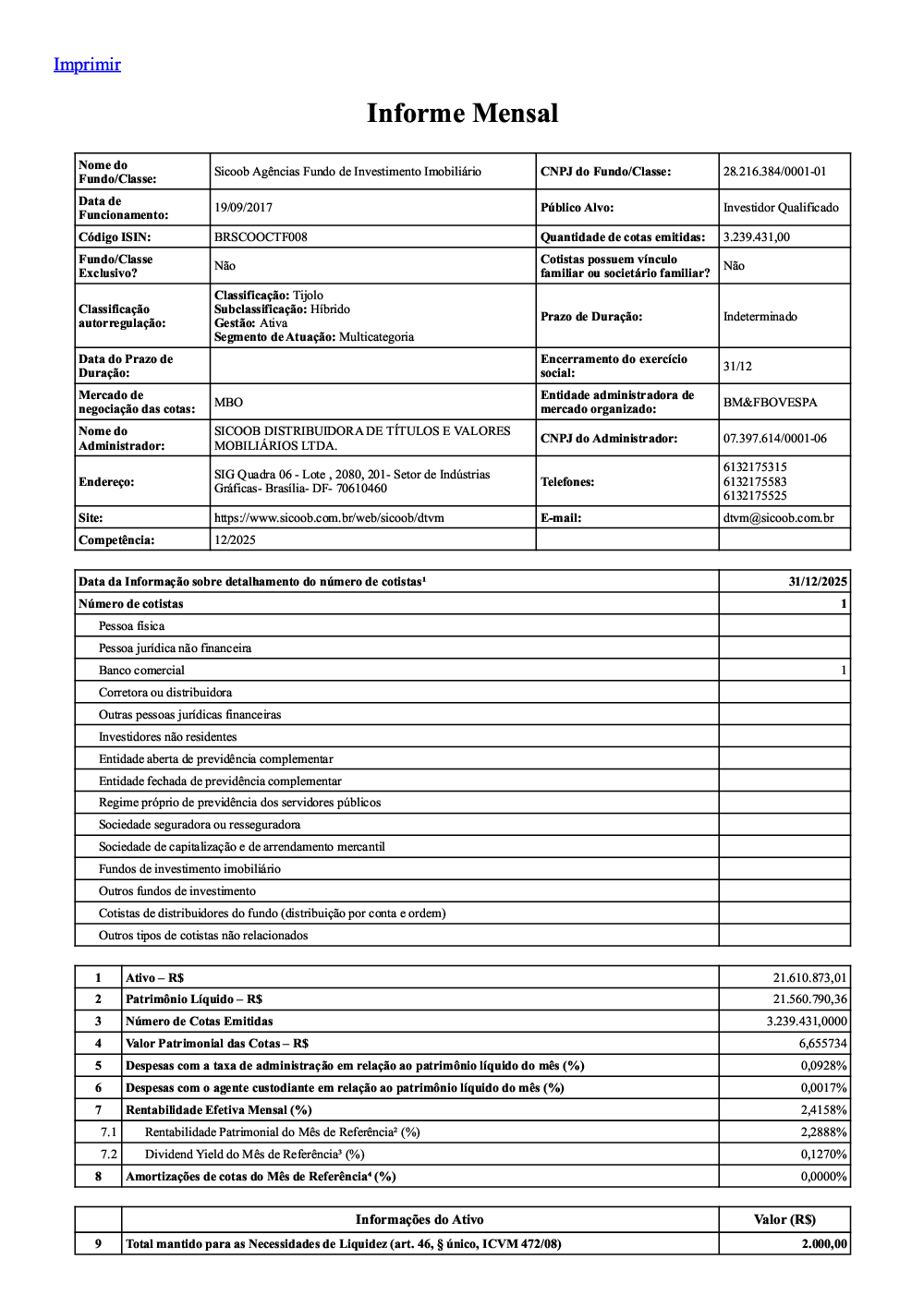Informações aos cotistas