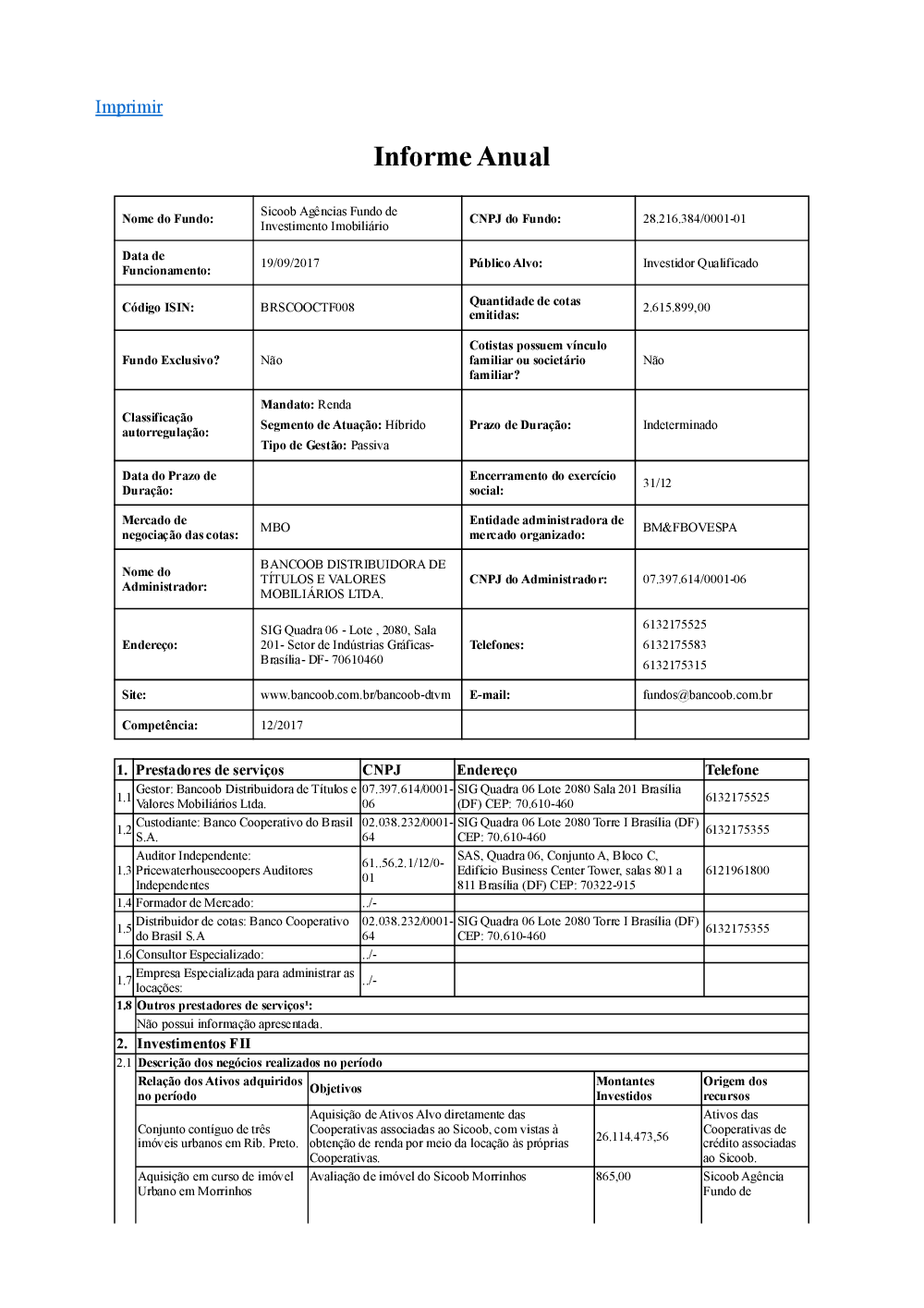 É um fundo destinado a receber aplicações, no segmento de renda fixa, de clientes pessoas físicas e/ou jurídicas do Banco Sicoob e das cooperativas do Sicoob, incluindo regimes próprios de Previdência Social, nos termos da Lei nº 9.717, assim como de quaisquer outros investidores, inclusive Companhias Seguradoras, Sociedades de Capitalização e Entidades Abertas e Fechadas de Previdência Complementar.
