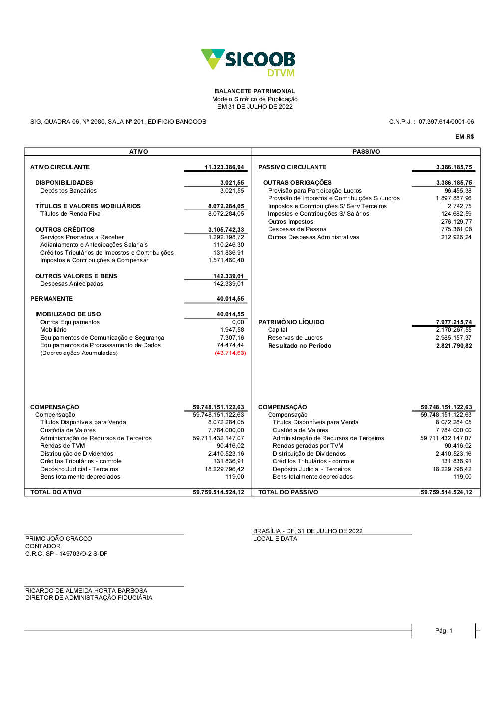 O Sicoob Distribuidora de Títulos e Valores Mobiliários Ltda. (Sicoob DTVM) é uma empresa especializada na Administração e Gestão de Recursos de Terceiros, tendo como sócio único o Banco Cooperativo Sicoob S.A. – Banco Sicoob.