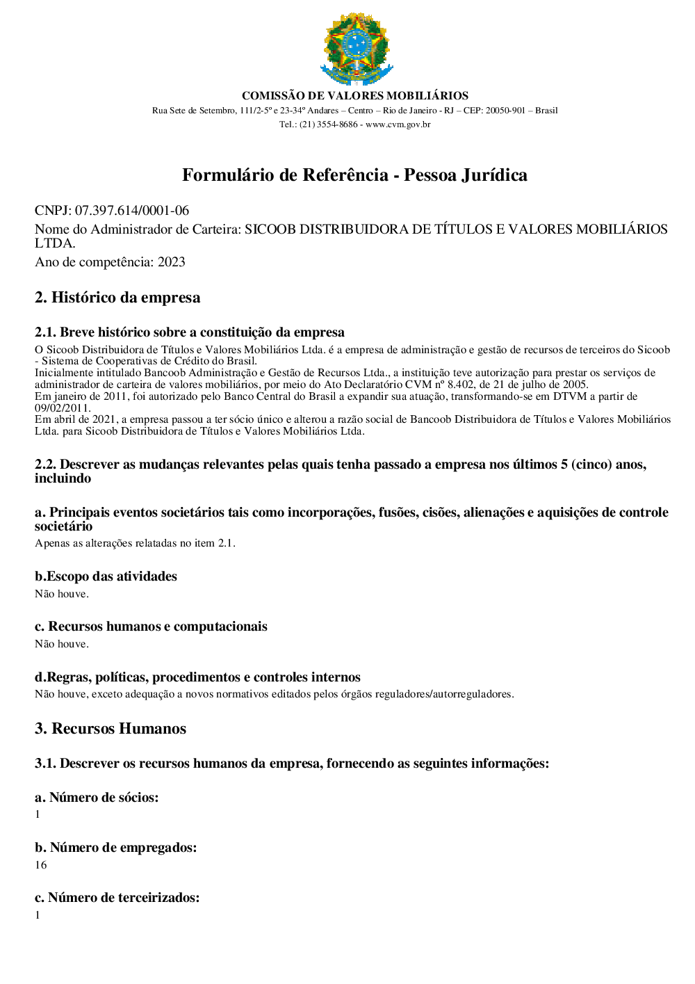 O Sicoob Distribuidora de Títulos e Valores Mobiliários Ltda. (Sicoob DTVM) é uma empresa especializada na Administração e Gestão de Recursos de Terceiros, tendo como sócio único o Banco Cooperativo Sicoob S.A. – Banco Sicoob.