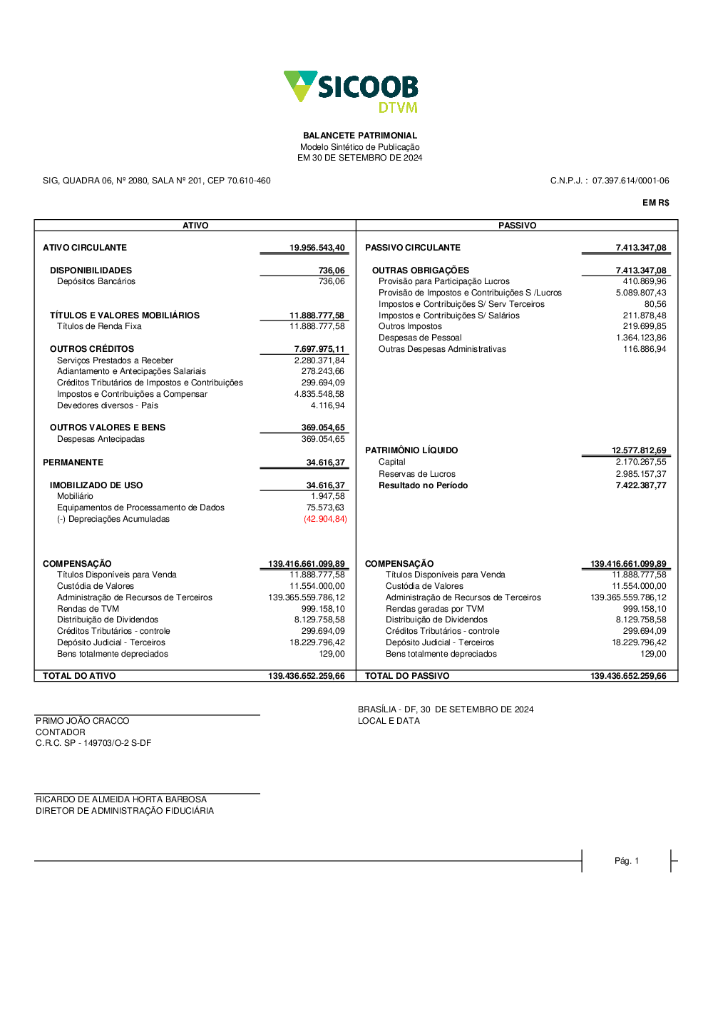 O Sicoob Distribuidora de Títulos e Valores Mobiliários Ltda. (Sicoob DTVM) é uma empresa especializada na Administração e Gestão de Recursos de Terceiros, tendo como sócio único o Banco Cooperativo Sicoob S.A. – Banco Sicoob.