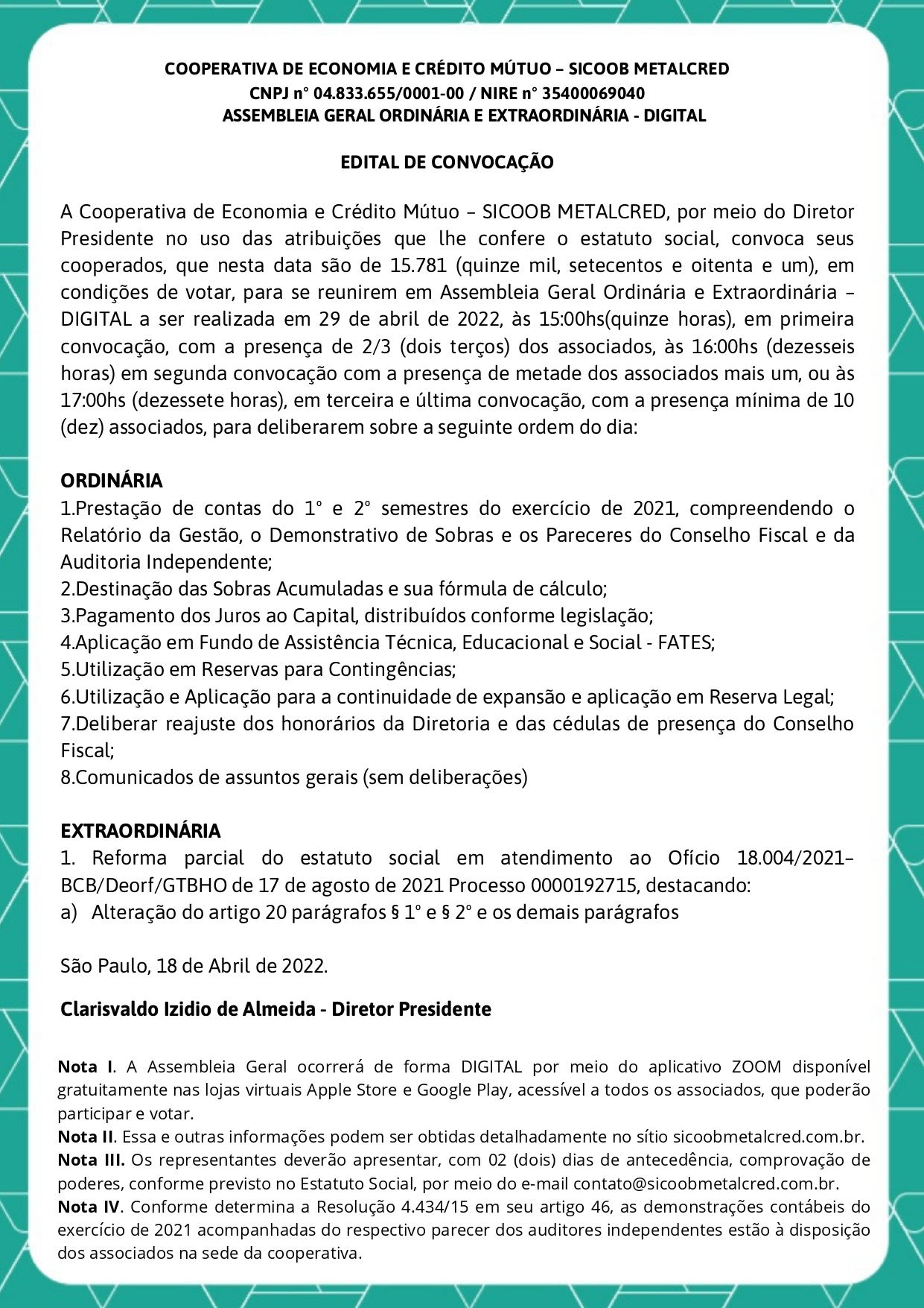 Edital AGO/AGE 2022 - Nacional
