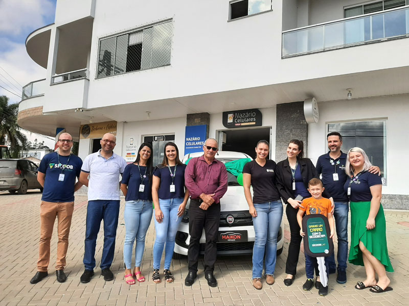 "A gente adora entregar prêmios aos nossos associados" disse Pedro Locks, presidente Sicoob Alto Vale. No mês de abril foi a vez do município de Taió, onde o associado pessoa jurídica Nazário Celulares foi sorteado na campanha SicoobCap e ganhou um automóvel Fiat Mobi.