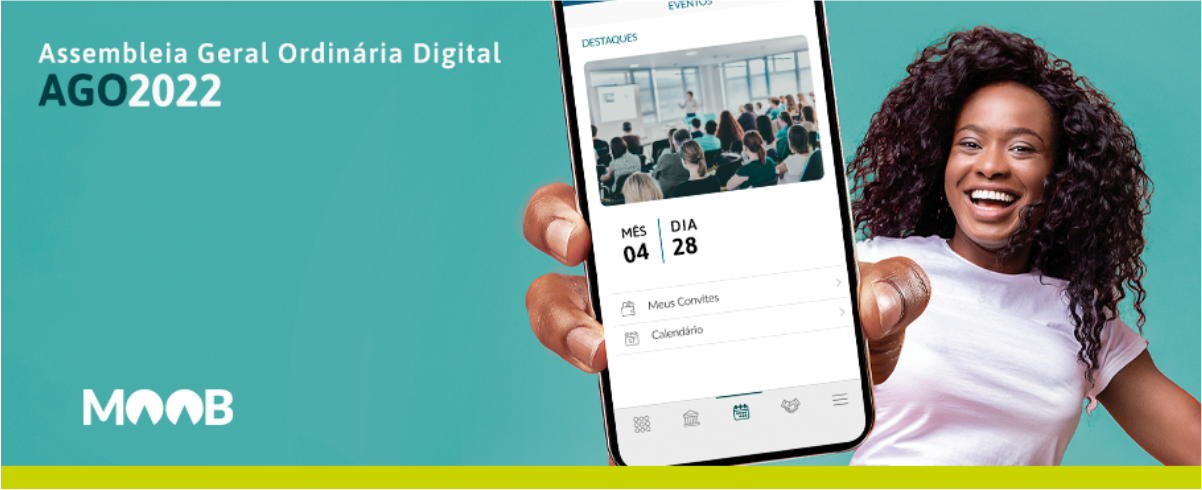 De forma digital, o Cooperado pode assistir, participar e votar, através do aplicativo Sicoob Moob e também pela internet por meio do sítio https://www.sicoob.com.br/web/moobweb.