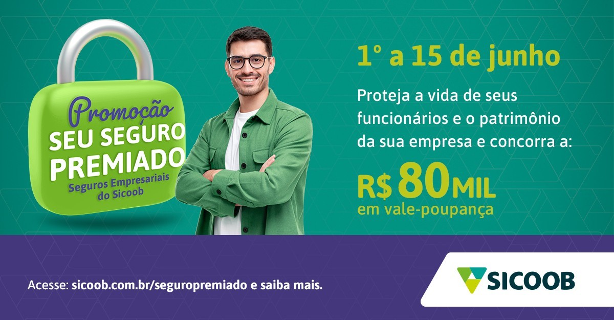 Até o dia 15 de junho, o Sicoob irá sortear um prêmio no valor de R$ 80 mil em vale-poupança para o público PJ que participar da promoção “Seguro Premiado”. Além de proteger seus funcionários e o patrimônio da empresa com o seguro contratado, o ganhador pode aproveitar, por exemplo, para utilizar o dinheiro para investir em máquinas, reformar sua empresa ou comprar um carro.