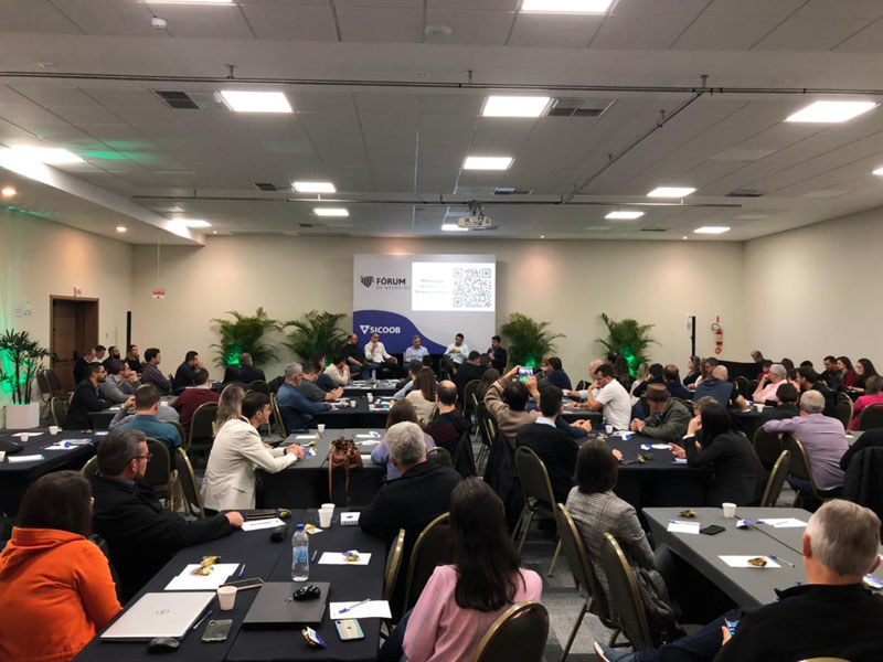 O Fórum de Negócios teve a participação de 90 integrantes das cooperativas filiadas. A dinâmica foi trazer um pouco das tendências do cenário econômico, os desafios com a captação de recursos, a necessidade do fortalecimento patrimonial das cooperativas e também as oportunidades e desafios do crédito. Para palestras e debates foram convidados profissionais do Centro Cooperativo Sicoob (CCS), entre eles, os superintendentes Comercial, Luciano Ribeiro, e Financeiro, Tobias Fragoso.