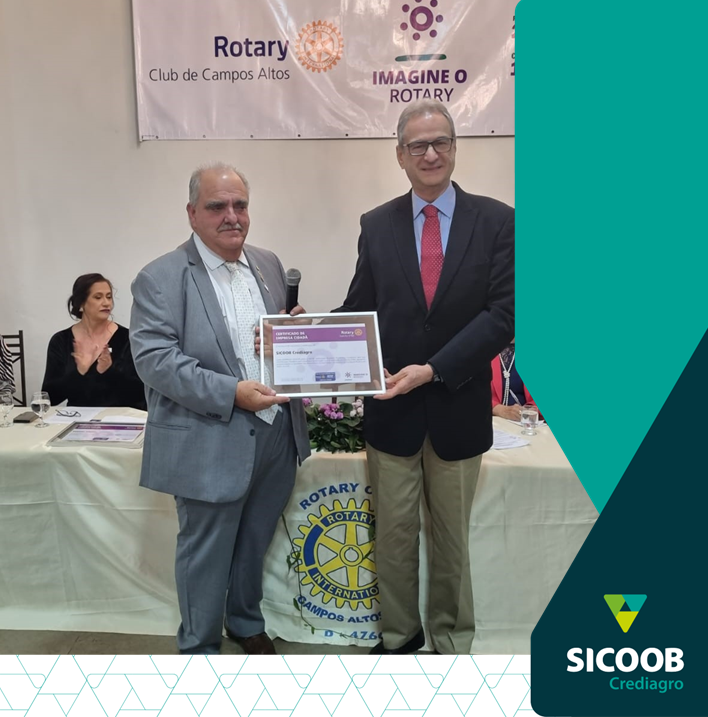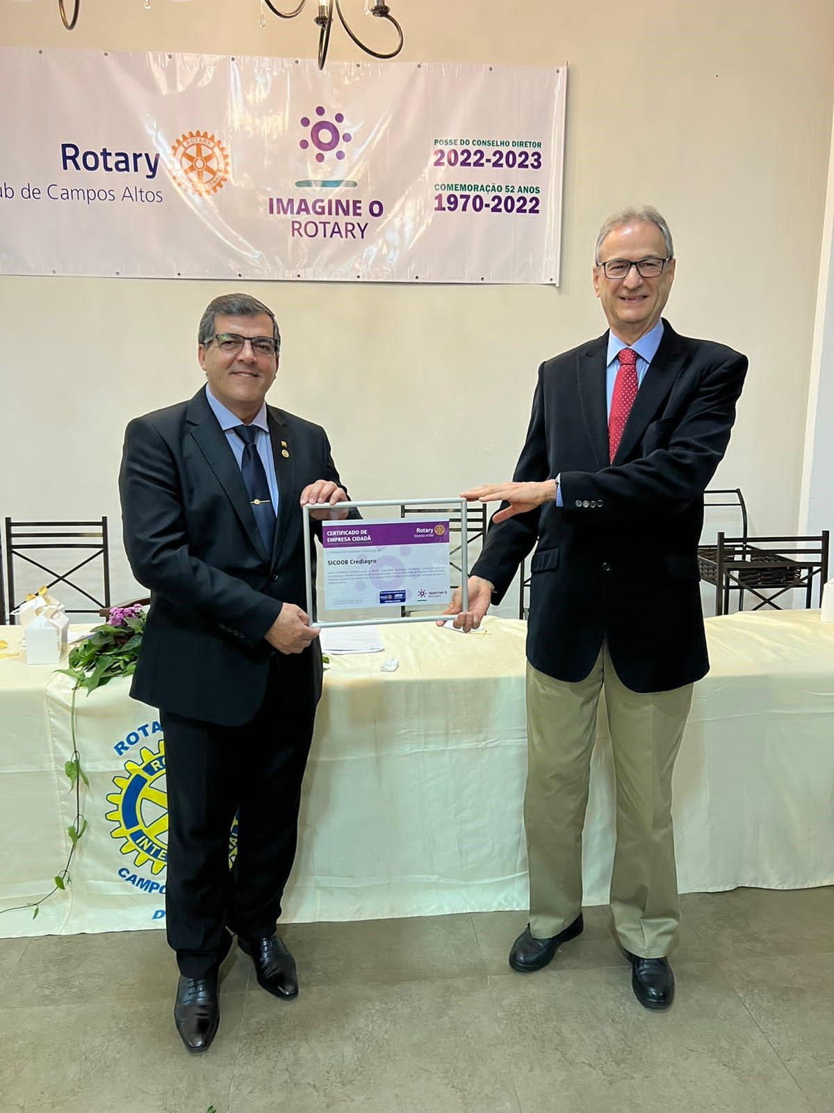 No dia 09 de julho de 2022, aconteceu no salão de eventos D’alvas Buffet a posse do Conselho Diretor do ano Rotário 2022/2023, tendo como Presidente o Sr. Marco Aurelio Fiorita Franco, juntamente com a comemoração dos 52 anos de fundação do Rotary Clube de Campos Altos - MG. Na oportunidade o Sicoob Crediagro representado por seu Diretor Comercial, Sr. Ricardo da Rocha Soares e por seu Gerente Geral, Sr. Ronan Resende de Carvalho, recebeu do Rotary Distrito 4760 o certificado de “Empresa Cidadã”.