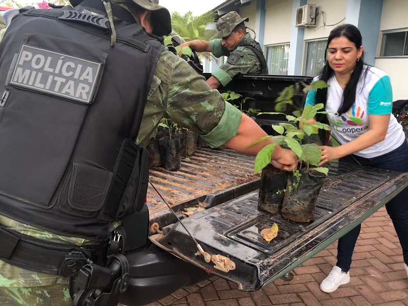 Além do plantio, o Sicoob Tocantins distribuiu para a comunidade 200 mudas da árvore