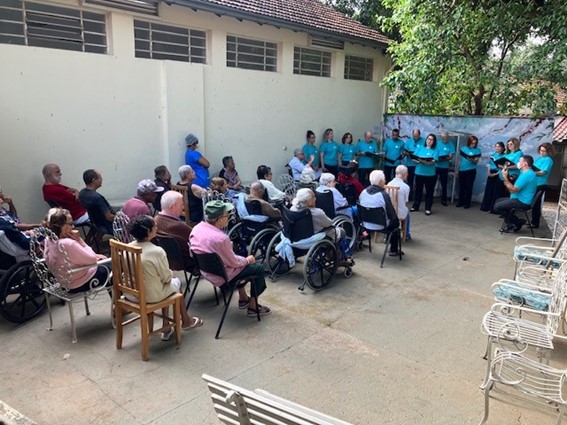 Os voluntários levaram amor, carinho, sorrisos e alegria numa tarde pra lá de animada. O coral Sicoob Credicom apresentou um repertório especial, que levou os idosos a cantarem e dançarem com os voluntários.
