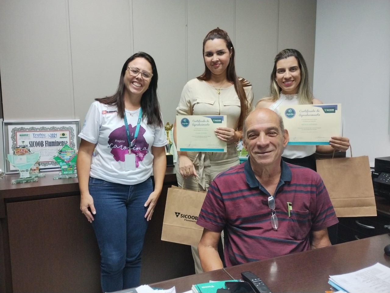 As representantes da cooperativa foram recebidas pelo Diretor-Presidente do Sicoob Fluminense, Neilton Ribeiro da Silva, pela Presidente do Conselho de Administração, Vera Lúcia Almeida, e pela Supervisora de Relações Sociais Maria Clara Oliveira.