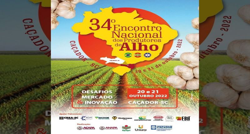 O 34º Encontro Nacional dos Produtores de Alho é uma realização da Epagri, Associação Catarinense dos Produtores de Alho (Acapa), Associação Nacional dos Produtores de Alho (Anapa), Universidade Alto Vale do Rio do Peixe (Uniarp), Prefeitura de Caçador e Associação dos Engenheiros Agrônomos da Região de Caçador (Aeac).