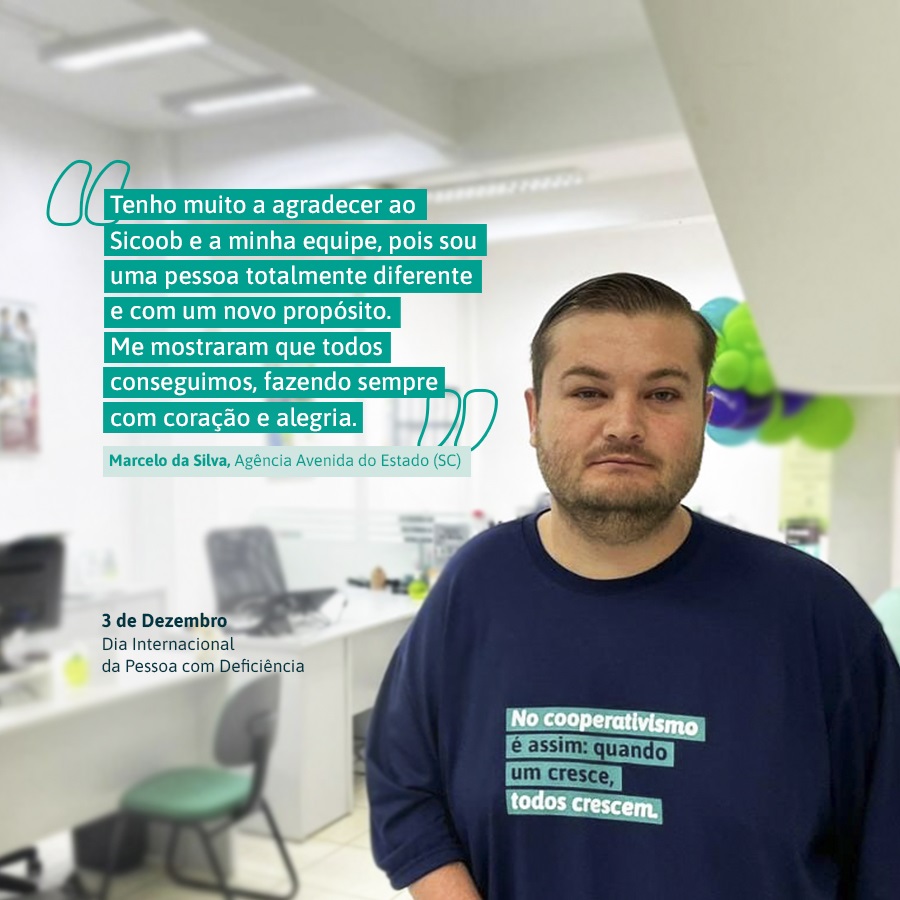 Hoje ele diz ser uma pessoa totalmente diferente e com um novo propósito. Como uma pessoa com deficiência, ele agradece as oportunidades e pela inclusão. “Neste ano passei a ter tesoureiro na agência, uma oportunidade que jamais achei que teria, mas minha gestora e o Sicoob MaxiCrédito mostraram que sim, consigo”.
