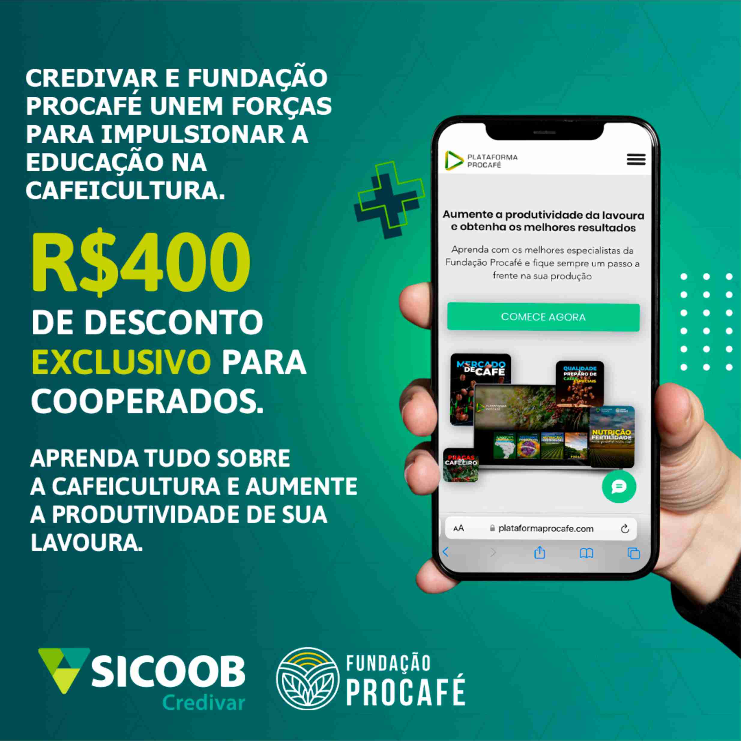 O Sicoob Credivar em parceria com a Fundação Procafé oferece uma oportunidade exclusiva para seus cooperados. Um desconto de 400 reais será ofertado para os 200 primeiros associados da Credivar que se inscreverem na plataforma de cursos sobre cafeicultura da Fundação.