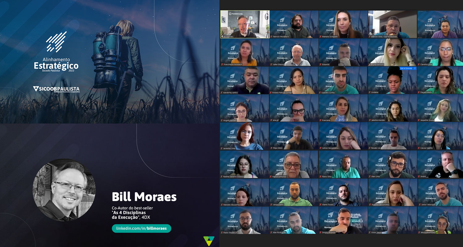 Durante o encontro, foi apresentado ao time Sicoob Paulista pautas importantes para o ano de 2023, como Gestão de Pessoas, 15 anos da Cooperativa, números, metodologias e nova MCI. Para finalizar a manhã, os colaboradores ainda acompanharam uma Palestra de Bill Moraes, que é coautor do livro “As 4 disciplinas de execução”, consultor administrativo da prática de execução e vice-presidente executivo da FranklinCovey.