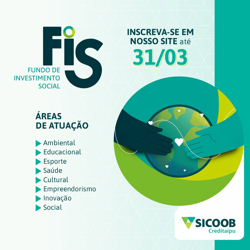 Fortalecer a cultura do cooperativismo para promoção de melhorias sociais e desenvolvimento das pessoas e comunidades. É com esse objetivo que o Sicoob Creditaipu atua por intermédio do Fundo de Investimento Social, (FIS).
