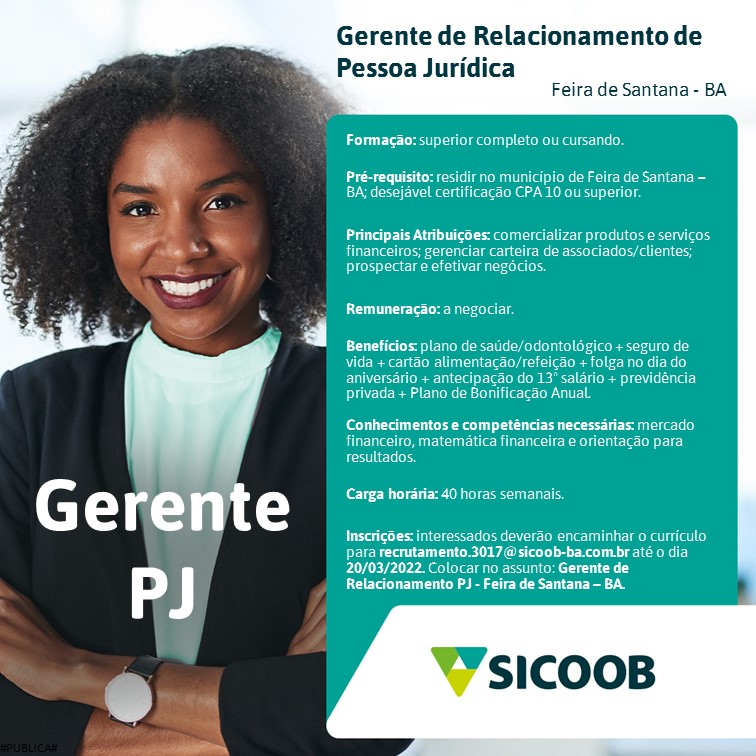 Sicoob Coopere contrata gerente PJ em Feira de Santana