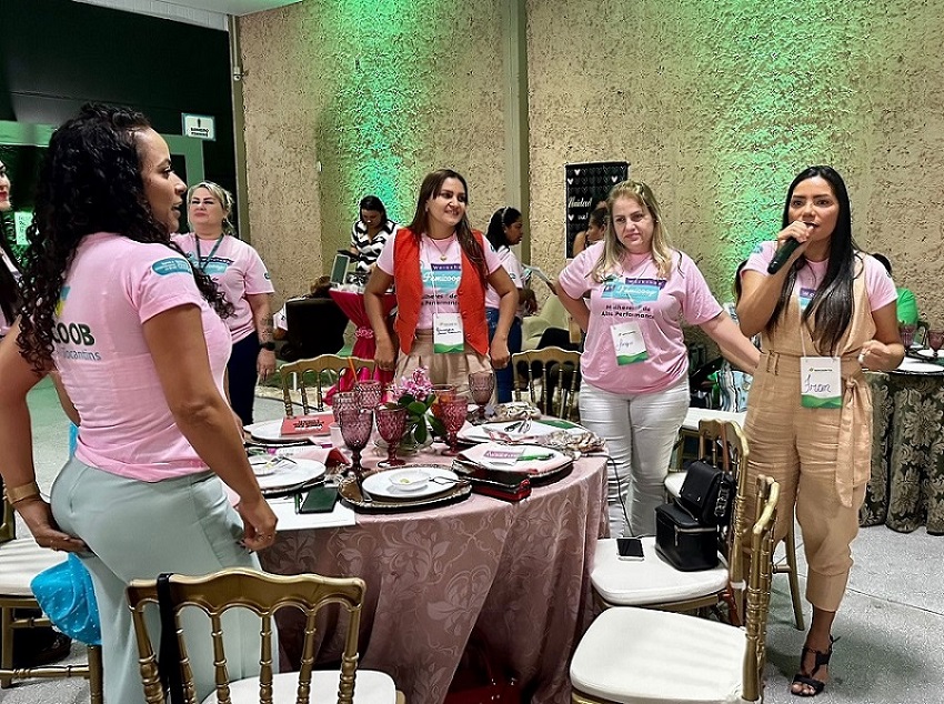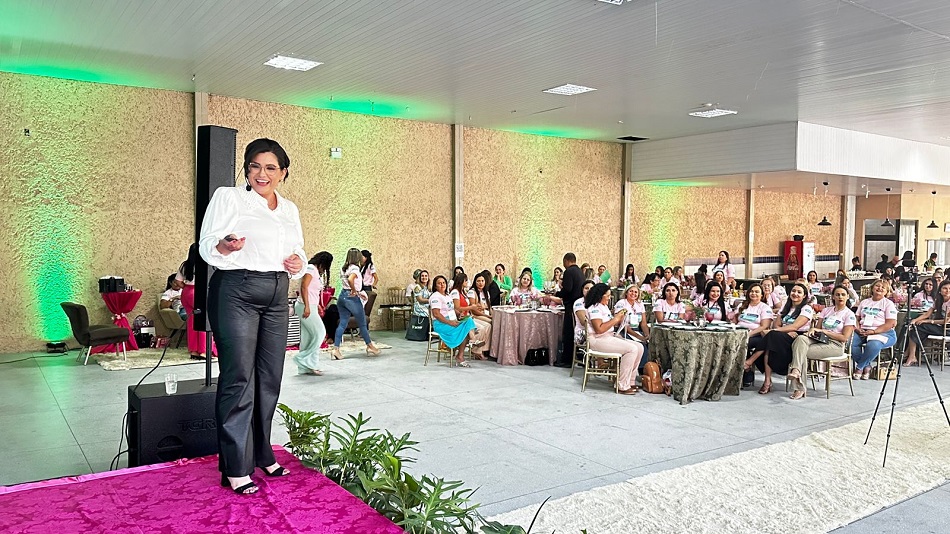 A empresária e mentora Andrea Stival abordou o tema “Alto Performar sem deixar de ser feminina”. “Acredito no sucesso das mulheres. A partir da hora que ela começa a olhar para si mesma, aí sim essa mulher vai crescer, vai conhecer a si mesma. Mulheres empreendedoras, olhem para si mesmas!”, pontuou. (Ascom Sicoob Tocantins)