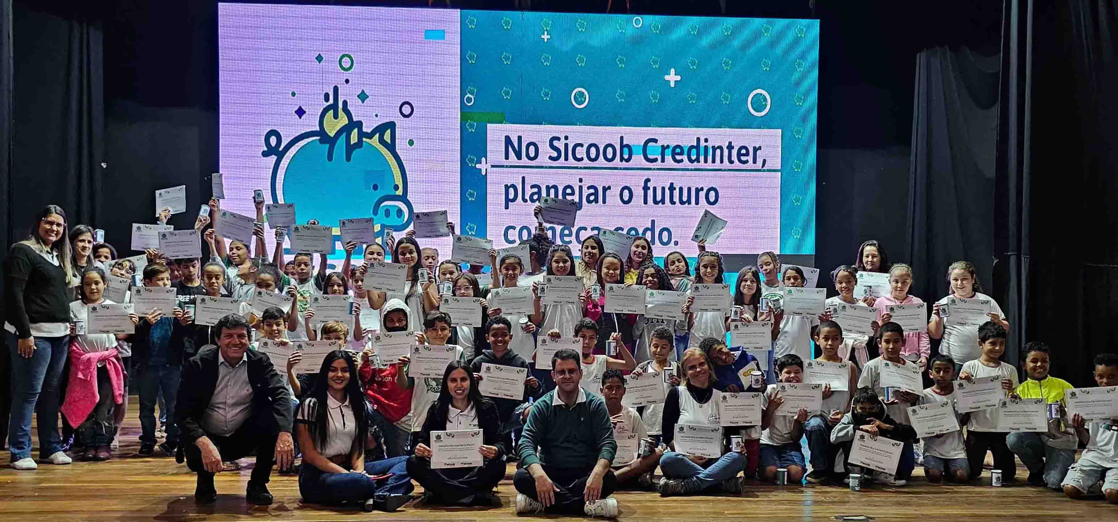 Os alunos da Escola Municipal Dom Inácio João Dal Monte e da Escola Municipal Olavo Vilas Boas participaram da palestra do Programa Poupeirinhos do Sicoob Credinter, realizada no Centro Cultural Professora Fernandina Tavares Paes.