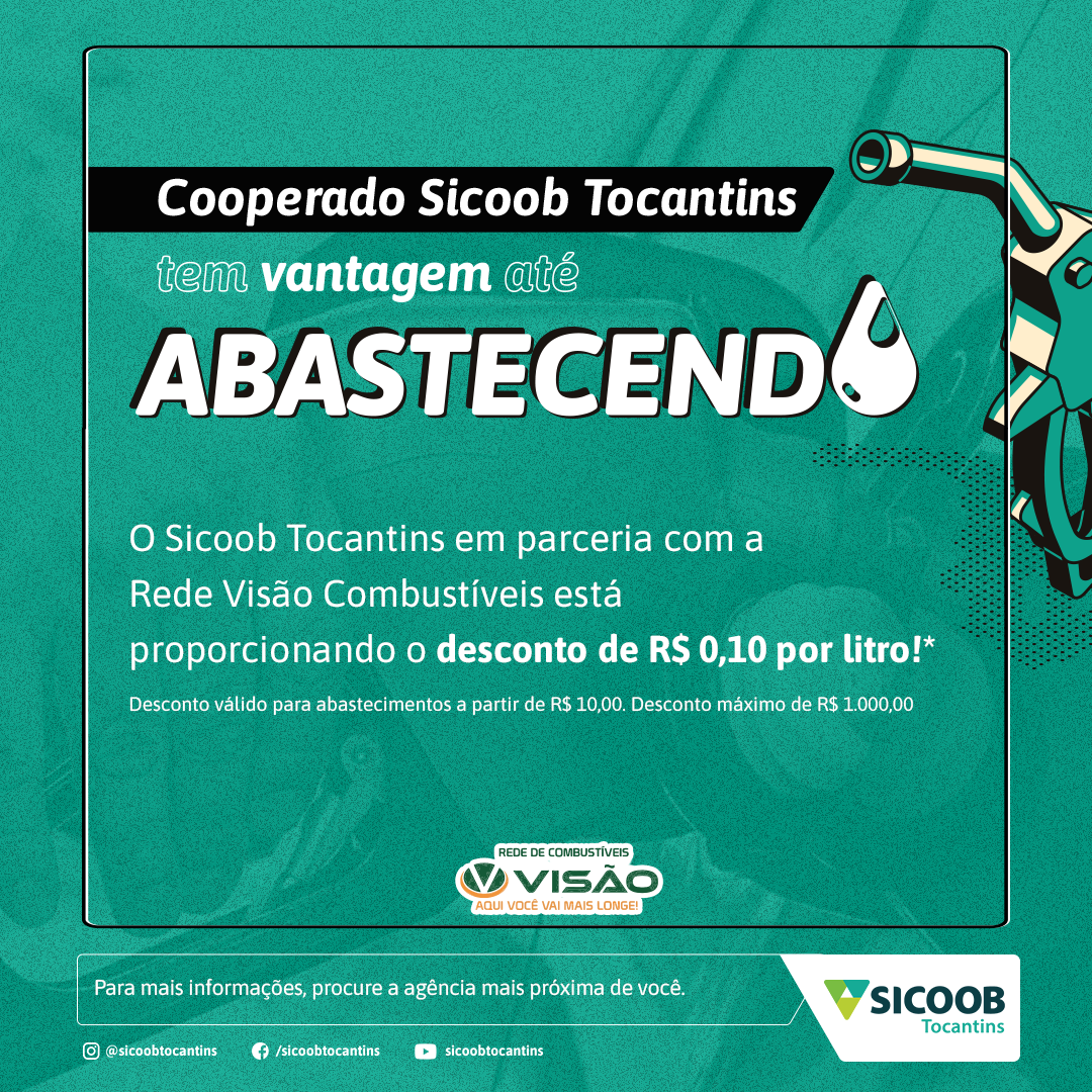 O benefício será concedido a todos os cooperados do Sicoob Tocantins que abastecerem nos postos da Rede Visão e utilizarem os meios de pagamentos da Cooperativa.