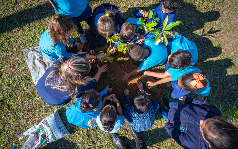 Desde 2016 a cooperativa, em parceria com o IFC e a Epagri, vem desenvolvendo ações de plantio de árvores e conscientização ecológica