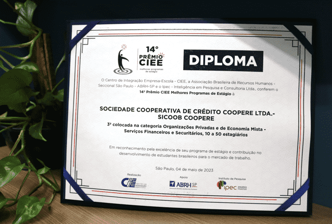 Destaque no CIEE: Sicoob Coopere recebe visita especial e é agraciado com Troféu e Diploma - Nacional