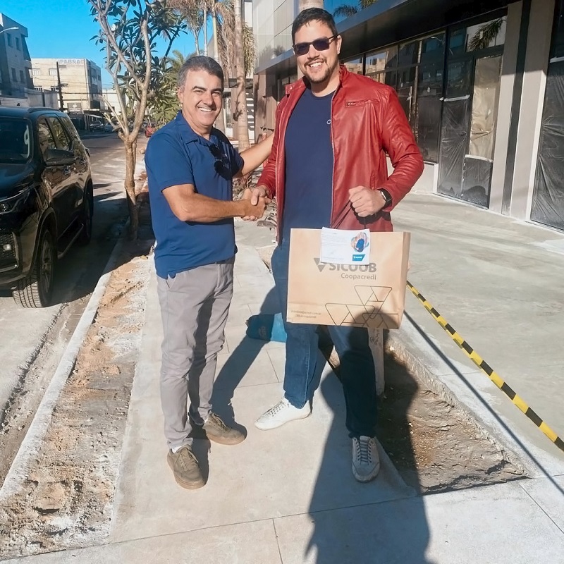 Celio entregou um brinde ao cooperado em agradecimento. "O Grupo Pirâmide e Cicllos Seguradora são muito fortes, o que demonstra a capacidade e empreendedorismo do Gilberto Junior na direção dos negócios. Ficamos muito felizes em tê-lo como cooperado, até por essa ligação histórica de sua família com o Sicoob Coopacredi", diz o Presidente.
